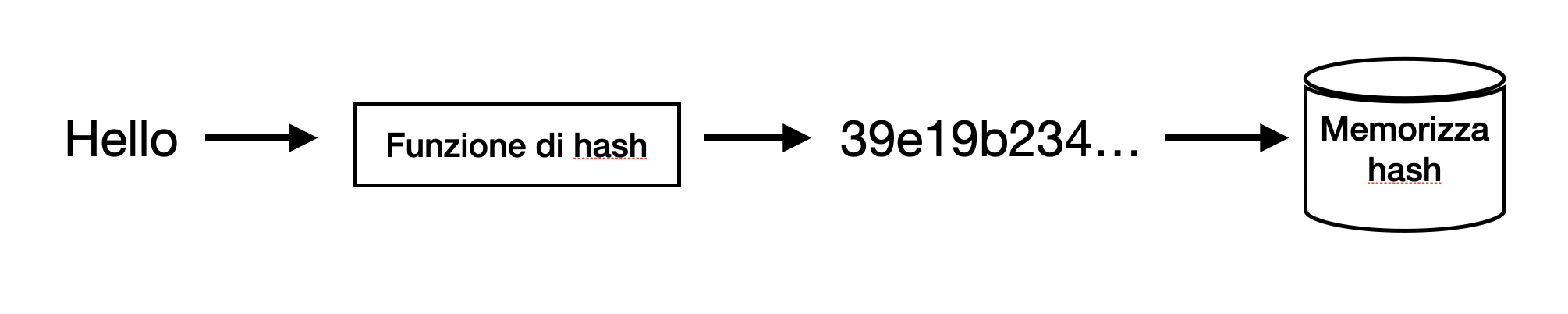 Quando un sistema deve utilizzare una password, non la memorizza in chiaro, ma salva solo il suo hash, cioè il risultato di una funzione matematica che trasforma il testo in una sequenza di caratteri apparentemente casuale. L’aspetto importante è che questa trasformazione è a senso unico: dall’hash non è possibile risalire alla password originale. Questo offre due vantaggi fondamentali.