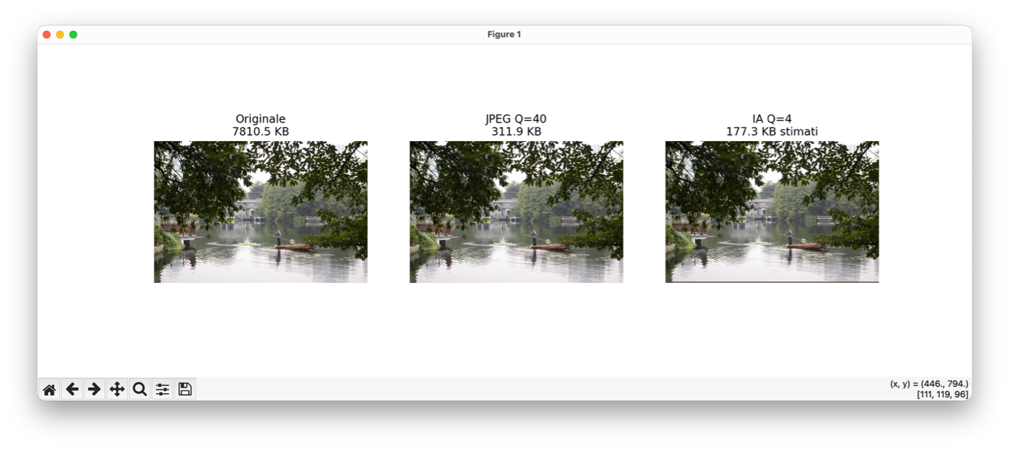 1. Variare i parametri di qualità per JPEG (jpeg_quality) e IA (quality) e osservare come cambiano le dimensioni e la qualità.