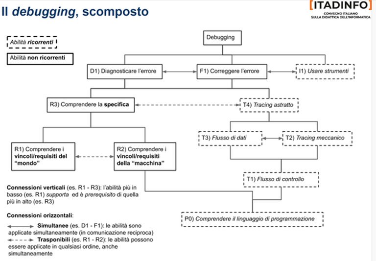 Dipende naturalmente dalla complessità del problema risolto dal programma, ma in generale il debug non costituisce un’impresa semplice, gli autori dell’intervento infatti ritengono che, per la teoria scientifica del “carico cognitivo”, è significativamente più efficace suddividere l’attività di debugging in sottoabilità più semplici come: